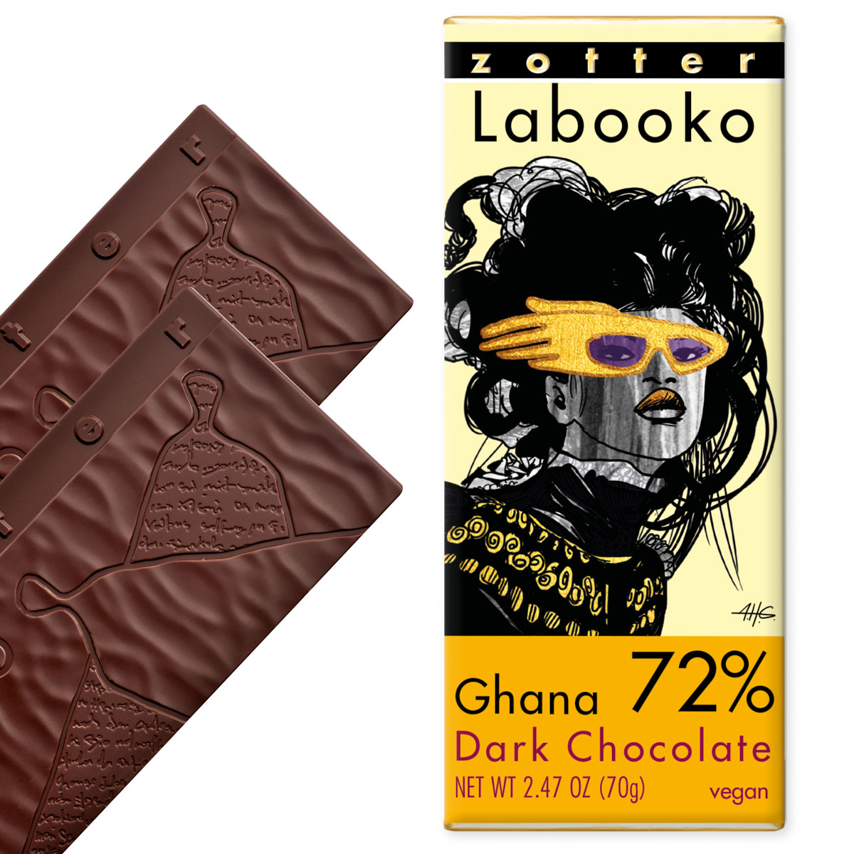 Extraordinary! Amelonado cocoa from Ghana, a bean that starts emitting its delicious scent as early as the roasting process. This cocoa has a very intense chocolatey flavor with mild notes of cream and fruit. It’s an outstanding cocoa variety with a very short conching time. Enjoy this single origin chocolate with 72% cocoa power – delicious proof that there is exceptional cocoa to be had in Africa.