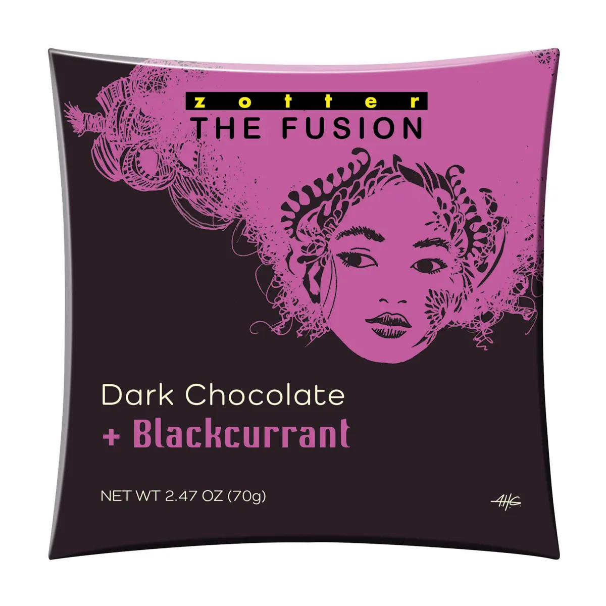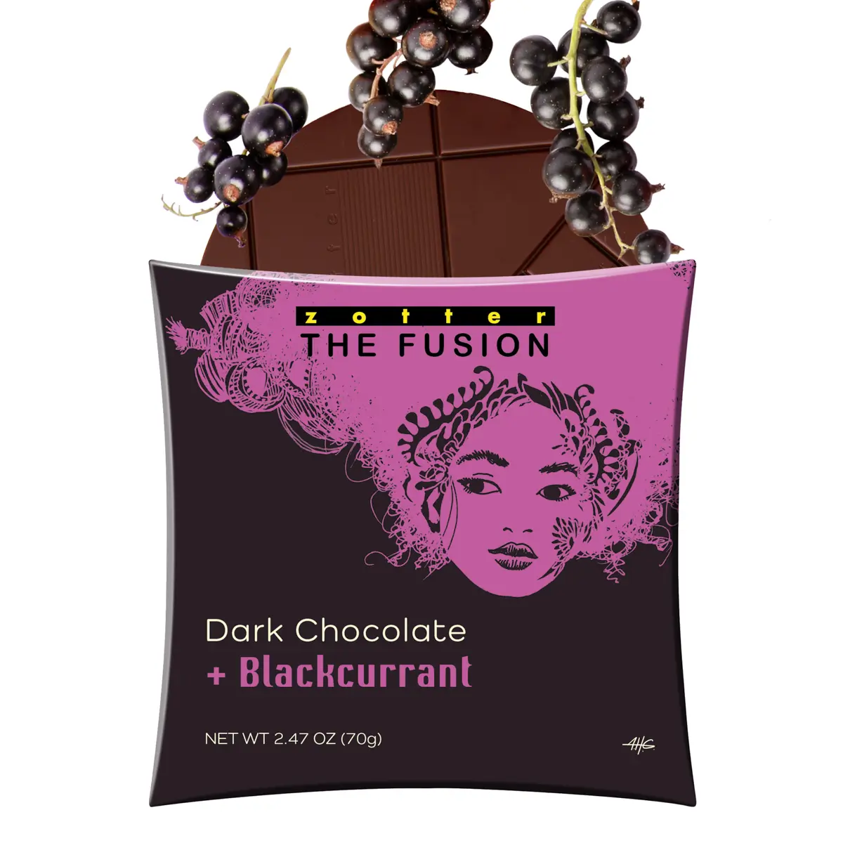 Dark chocolate with a classic 70% cacao content enhanced with a blackcurrant couverture combining a sublime chocolate indulgence with a fruity, tangy blackcurrant flavor. Cacao naturally possesses lots of berry notes, which are encouraged by our blackcurrant infusion, made with genuine blackcurrants. It gets its tender melt from pure cocoa butter. Created, bean-to-bar, using fine flavor cacao and freeze-dried blackcurrants. A dark chocolate with a refreshing blackcurrant flavor – a sophisticated and very berry indulgence!