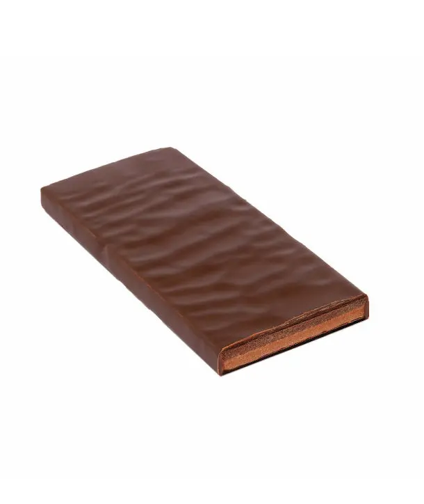 A balanced dark chocolate filled with cherry brandy. In the first layer the brandy melts together with marzipan and in the second layer with a light butter ganache.