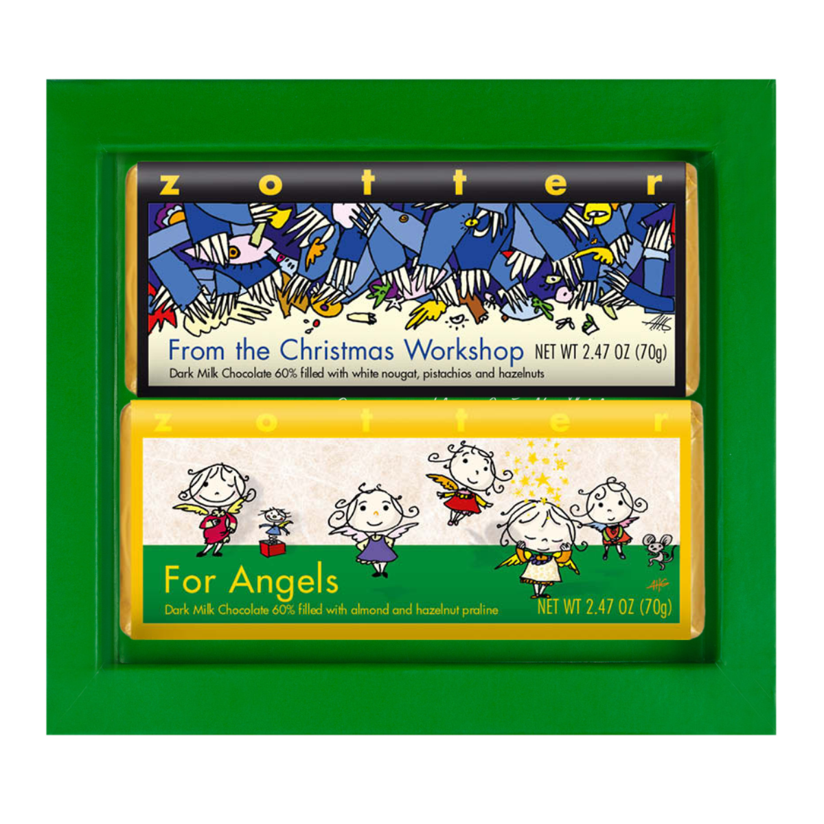 Surprise your loved ones, friends, colleagues, or boss with a Zotter Chocolate Gift Set filled with 2 delicious hand-scooped chocolate bars. The bars included are listed below.