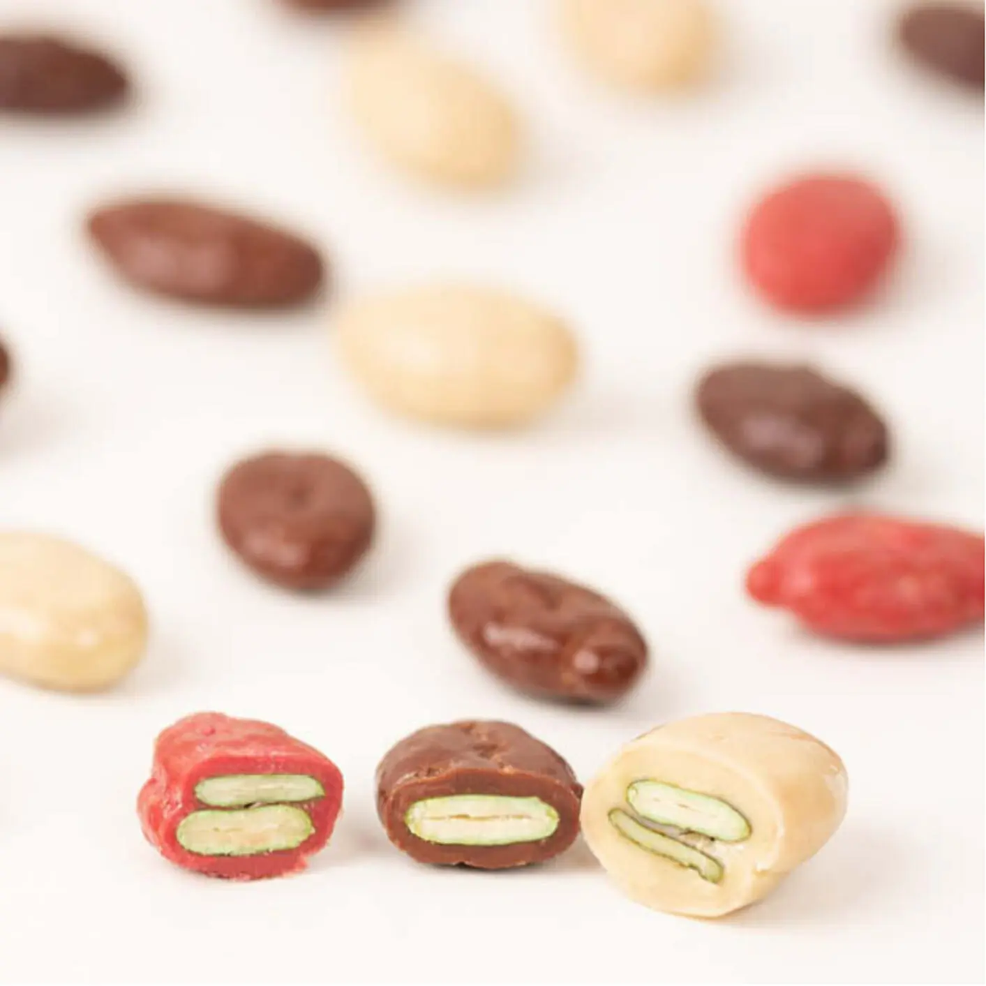 Pumpkin Seeds in White Chocolate, Milk Chocolate, Noble Bitter Chocolate and Raspberry Couverture