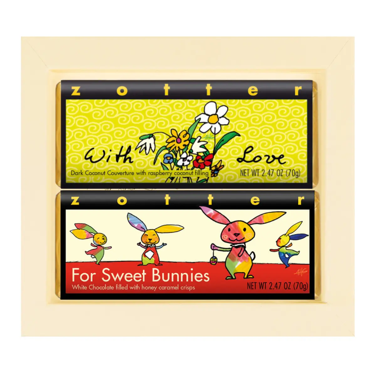Gift it to yourself or surprise your loved ones, friends, colleagues, or boss with a Zotter Chocolate Gift Set filled with 2 delicious Zotter chocolate bars. The bars included are listed below.