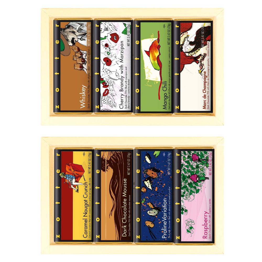 There is something for everyone in this delightful gift set. Eight of the best hand-scooped bars Zotter has to offer! Includes 2 beautiful Zotter gift boxes with a clear cover and free shipping.