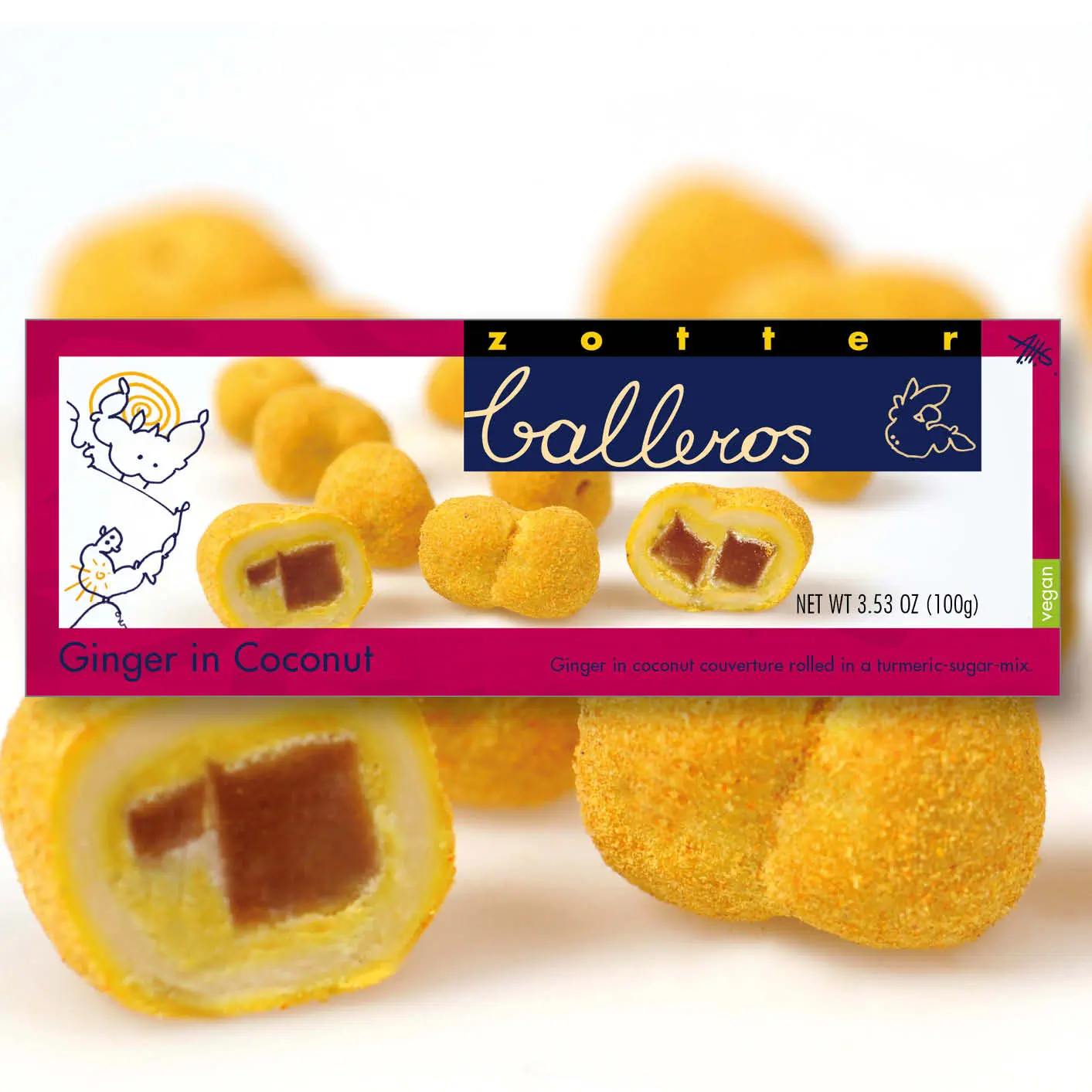 Ginger in Coconut Couverture rolled in turmeric-sugar-mix