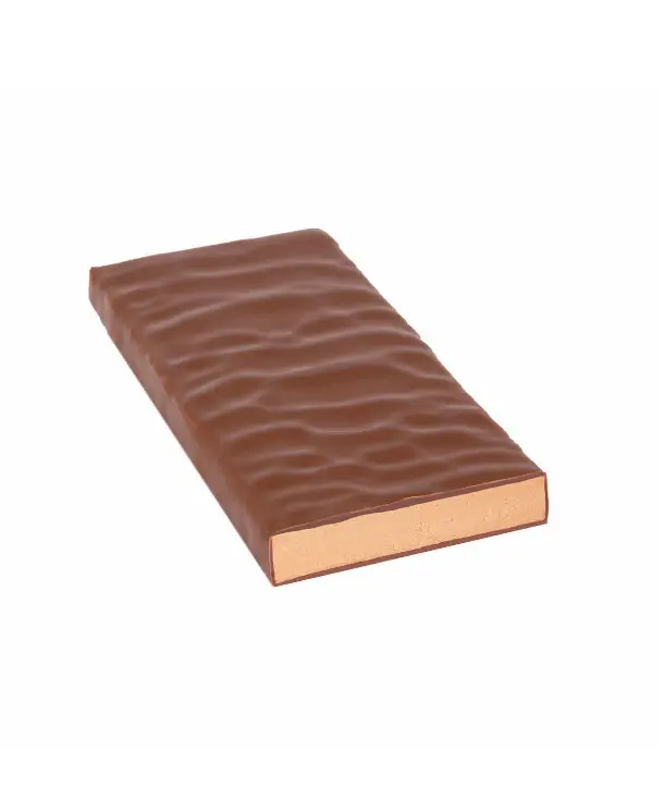 A wonderfully soft filling of tender-melting mousse, this sweet milk chocolate with a 40% cacao content is buttery-fine and delicious. It’s hugged by a dark milk chocolate boasting 60% cacao power, offering an exciting contrast.