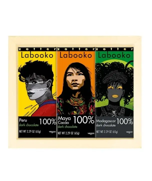 Surprise your loved ones, friends, colleagues, or boss with a Zotter Chocolate Gift Set filled with 3 delicious solid Labooko chocolate bars. The bars included are listed below.