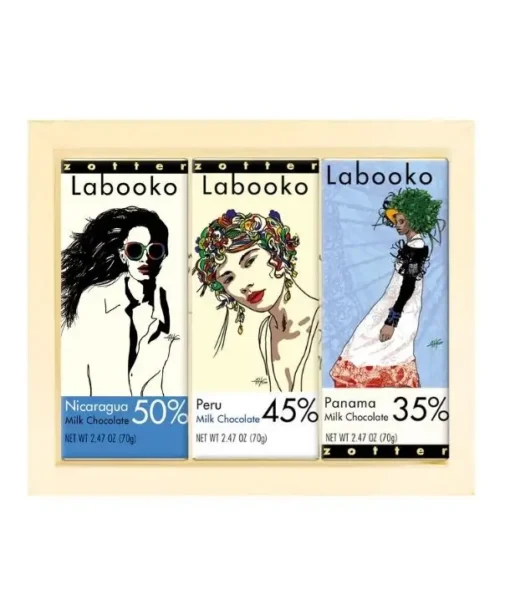 Surprise your loved ones, friends, colleagues, or boss with a Zotter Chocolate Gift Set filled with 3 delicious solid Labooko chocolate bars. The bars included are listed below.