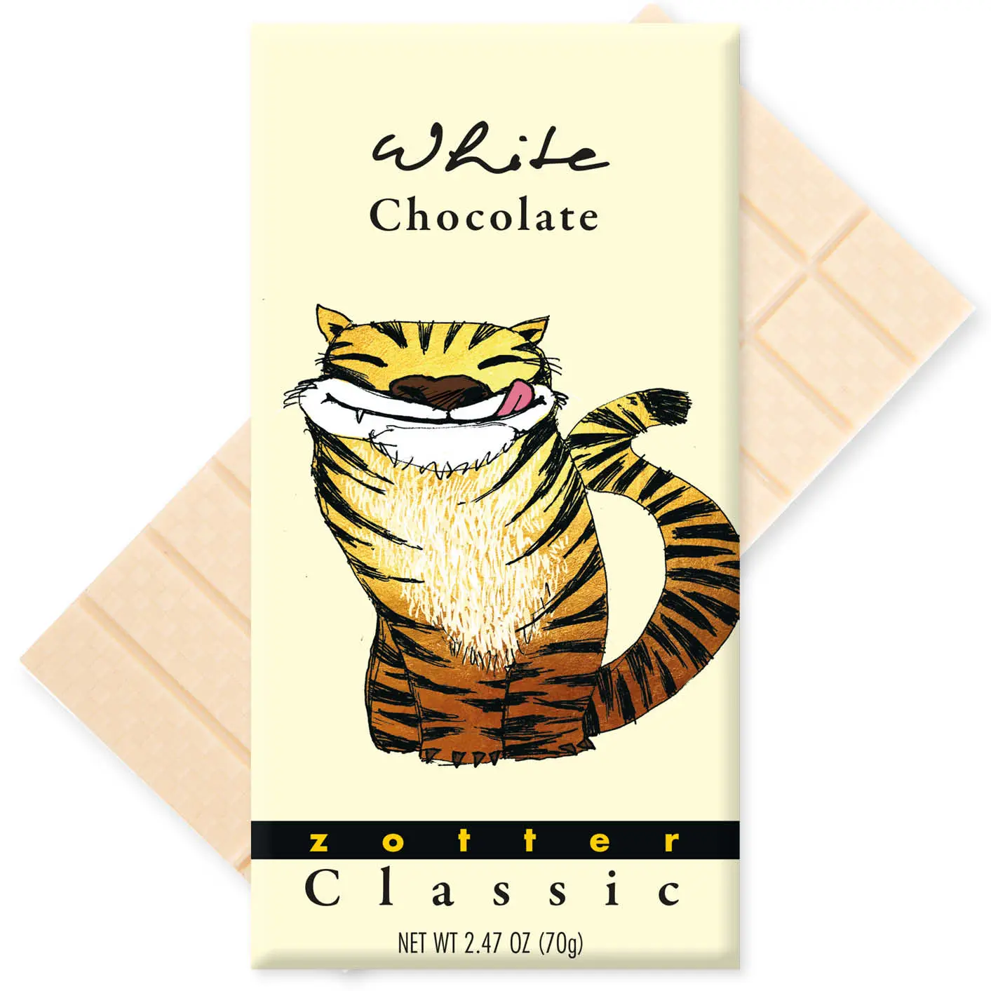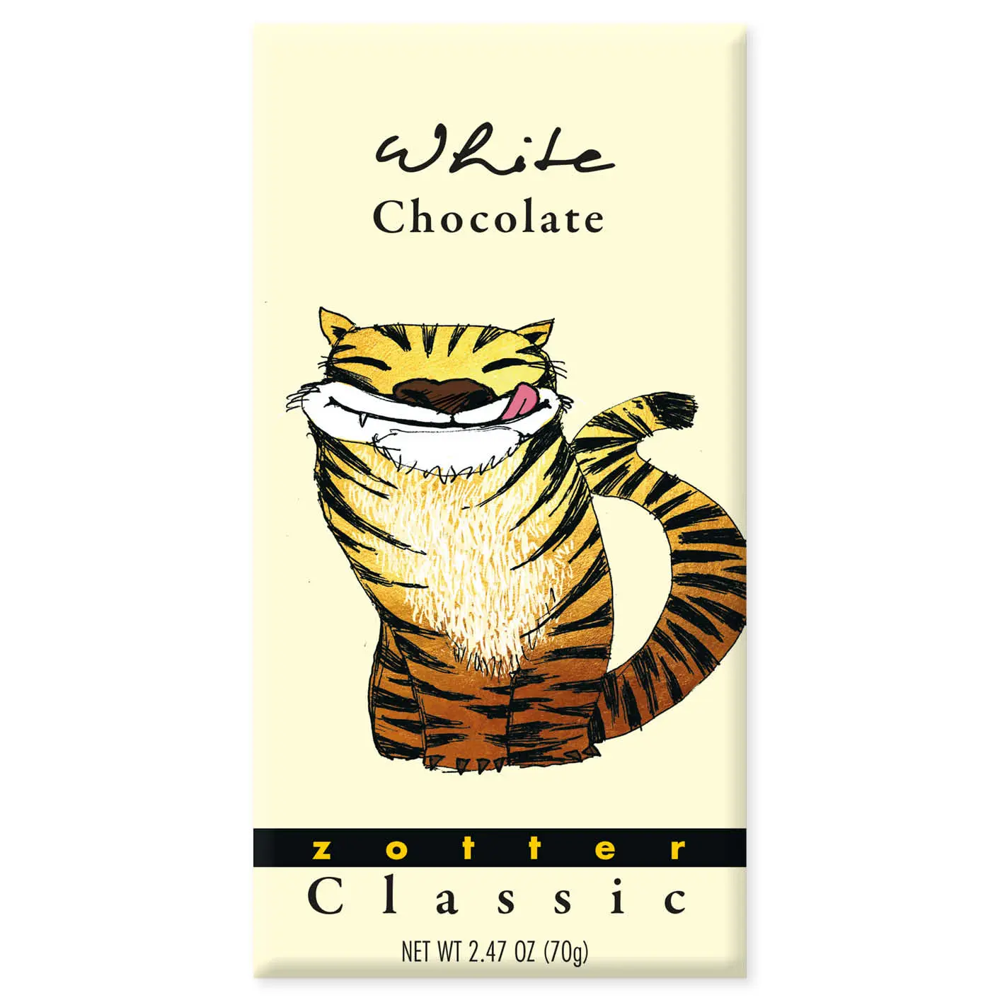 A classic white chocolate for children, teens and all those who love their chocolate sweet. With tender melting cocoa butter, raw cane sugar and genuine Bourbon vanilla from Madagascar – a country offering a lot more than just crazy looking animals. Entirely organic and fair trade and created in Zotter’s magical bean to bar factory.